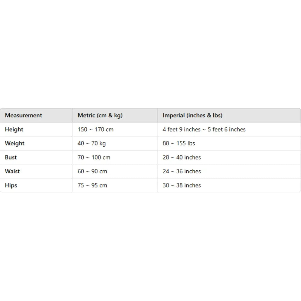 • Bust: 70 - 120 cm (28 - 47 inches)