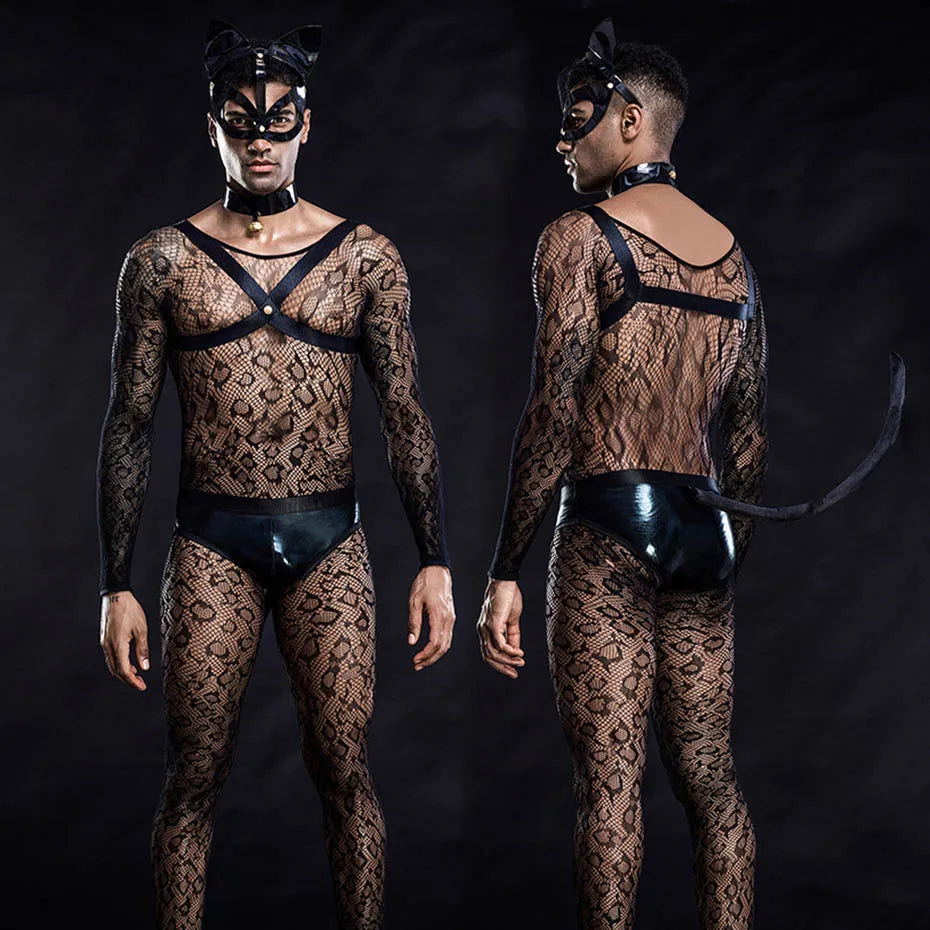 Men Alluring Doctor Uniform Mesh Lingerie Set Role Play Clubwear Outfit